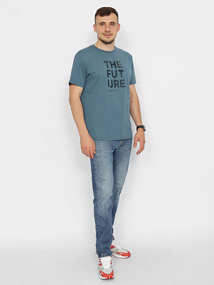 Футболка мужская из кулирной глади. С коротким рукавом. Воротник из эластичной рибаны. На полочке принт (будущее).