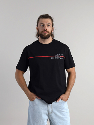 Футболка мужская с V-образным вырезом из трикотажа с эластаном.